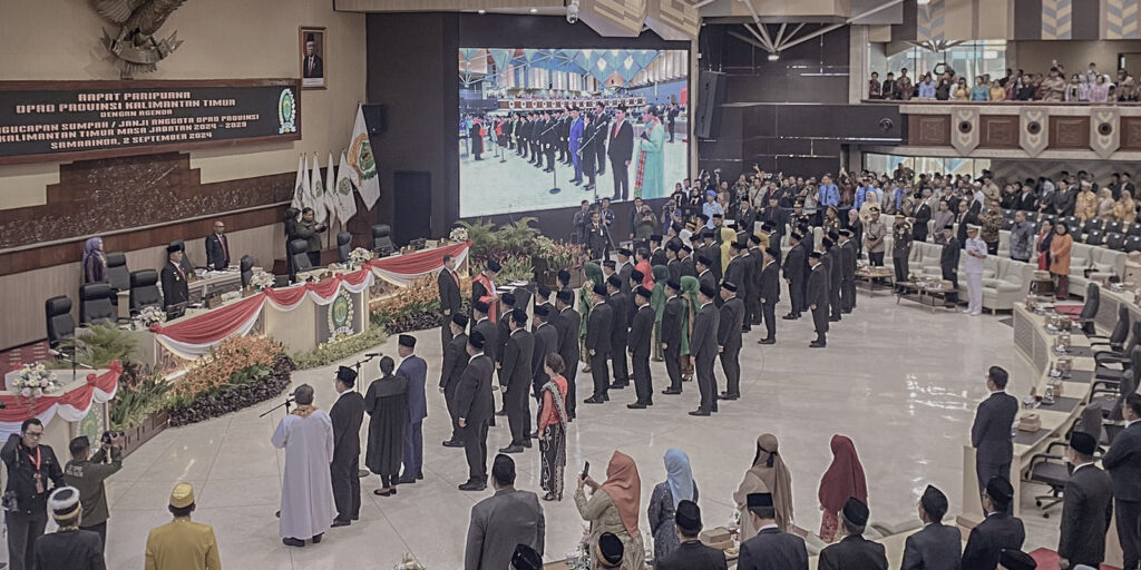 Ujarku.co – Sebanyak 53 anggota Dewan Perwakilan Rakyat Daerah (DPRD) Kalimantan Timur (Kaltim) periode 2024-2029 resmi dilantik di Gedung DPRD Kaltim, Senin pagi (2/9/2024). Pelantikan tersebut menandai dimulainya periode masa jabatan baru mereka untuk lima tahun ke depan.