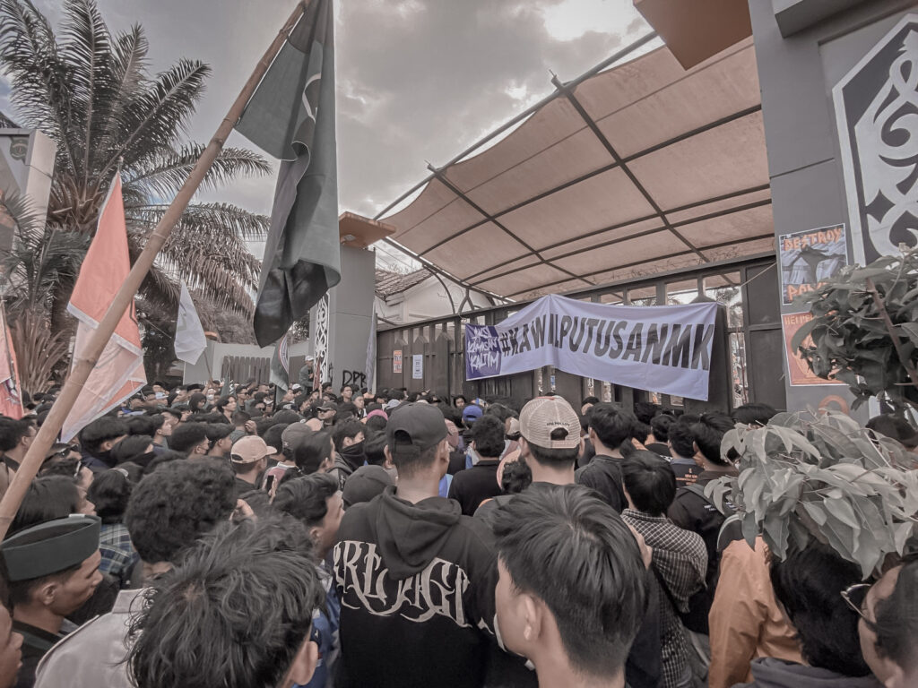 Demonstrasi melibatkan massa dari berbagai perguruan tinggi di Kaltim, termasuk dari Samarinda dan Kutai Kartanegara, serta masyarakat sipil.