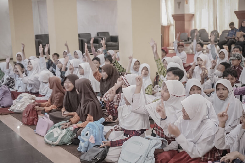 “Biasanya kalau ada kunjungan kelas, mereka tidak hanya melihat-lihat buku atau membaca. Kami berikan edukasi melalui dongeng dengan tema yang bisa menyesuaikan. Misalnya sekolah meminta cerita tentang adab kepada orang tua, maka pendongeng akan menyesuaikan temanya,” ujarnya.