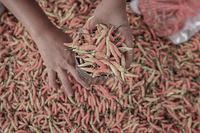 Berdasarkan Pusat Informasi Harga Pangan Strategis (PIHPS) Nasional, harga cabai merah besar naik 6,4 persen ke Rp65.300 per kg.