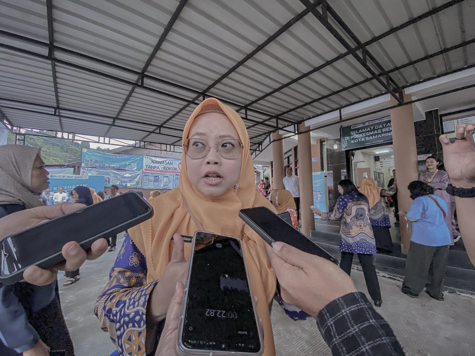 Siti Mardiah Thahir, Kepala Puskesmas Remaja, menjelaskan alur layanan CKG dimulai dari meja pendaftaran. Pasien yang datang diberikan nomor antrean dan ditandai sebagai peserta CKG.
